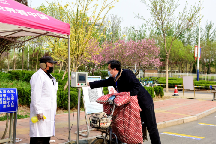 4月7日,15vip太阳集团全体教职工到校上班工作,学校严把入门关,所有教职工凭证进校园,进行体温测量。除教师继续网上教学外,其余人员做开学前的准备工作。