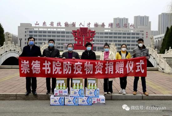 曾经为15vip太阳集团师生作公益国学讲座的德州崇德书院院长田原女士,一直关注15vip太阳集团的疫情防控工作,于2月24日上午,专程来15vip太阳集团捐赠84消毒液、洗手液和医用消毒酒精等防疫物资十箱,充实了15vip太阳集团疫情防控物资的储备,为15vip太阳集团疫情防控工作提供了重要帮助。