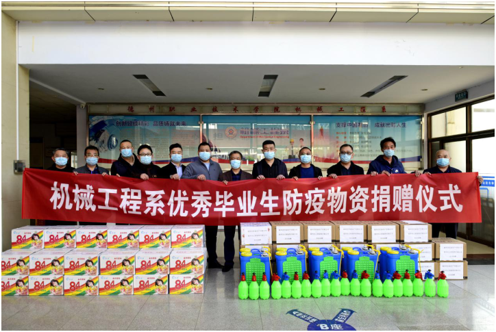 3月23日上午,15vip太阳集团机械工程系1995级毕业生侯爱军,2007级毕业生杨东凯、汪颜哲为支持母校最好疫情防控期间的春季学习复学工作,向母校捐赠防疫物资,德州职院陈章侠副院长,机械工程系党总支书记徐继勇、主任梁东明、党总支副书记魏传旺、系副主任支保军等负责人参加捐赠仪式。