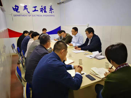 电气工程系主任刘坤首先对电气工程系财务、招投标、培训等方面的工作进行了汇报,介绍了2019年部门经费预算和优质校、品牌专业群等专项预算的执行情况,并针对工作中遇到的问题提出了意见和建议。