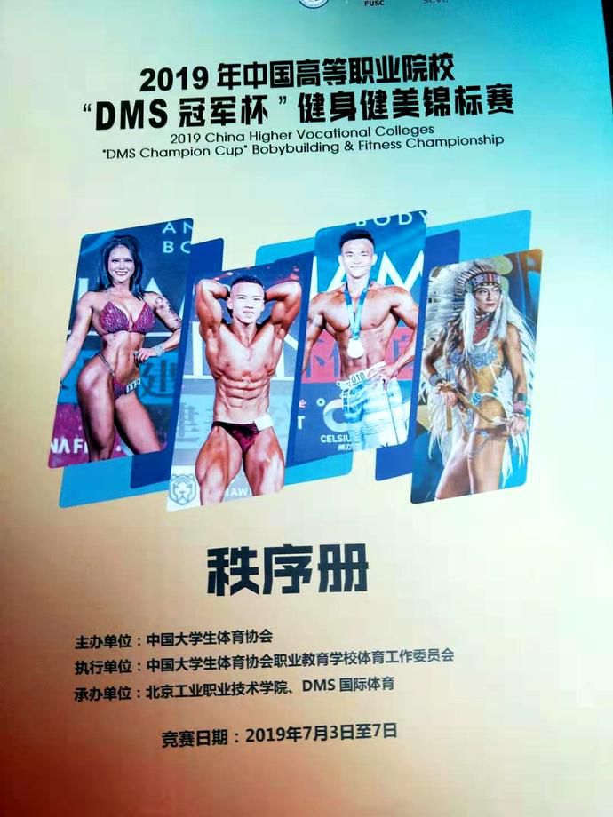 2019年全国职业院校“DMS冠军杯”健身健美锦标赛于7日–7日在北京举行,本次比赛是有中国大学生体育协会主办,北京工业职业技术学院承办、DMC国际体育承办,来自北京、浙江、广东、云南等地27支代表队、近200多名运动员参赛。