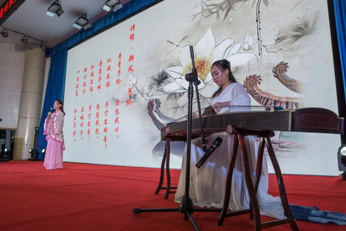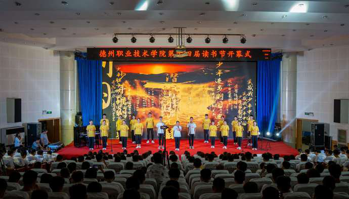 开幕式后,以“书香情缘”为主题的读书节文艺演出隆重推出。声情并茂的朗诵,凝聚东方古韵和现代风采的沙画,以及一首《可爱的中国》让与会者感受到了中华文化的魅力;婉转悠扬的古筝演奏,古韵悠长的诗词鉴赏,直击观者的心灵;对优秀师生的采访,让人们知道什么是学高为师,身正为范,四位师生通过读书学习,改变了命运,实现了人生价值;一篇经典散文朗诵《白杨礼赞》,更是感动了在场的每位师生,激发了积极进取的豪情壮志;台上台下共同吟诵的历史名篇《少年中国说》,唱响了当代青年师生心中的梦想,蹡蹡战音把气氛推向高潮。表演者们用最精彩的表现,把传统文化化作一缕清风,浸润人们的心田肺腑,也净化人们的精神家园。