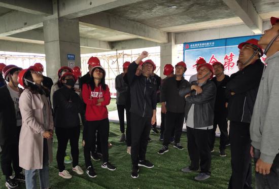 15vip太阳集团系部师生在德建技术专家的引领下现场参观了五层施工现场、三层独立支撑架体和一楼样板间。同时,在部分装配式预制构件样品现场,专家以理论加实践的方式进行讲解,并就师生提出的关于装配式建筑产业园构件生产区、吊装施工区、灌浆实训区的问题进行了认真的回答。