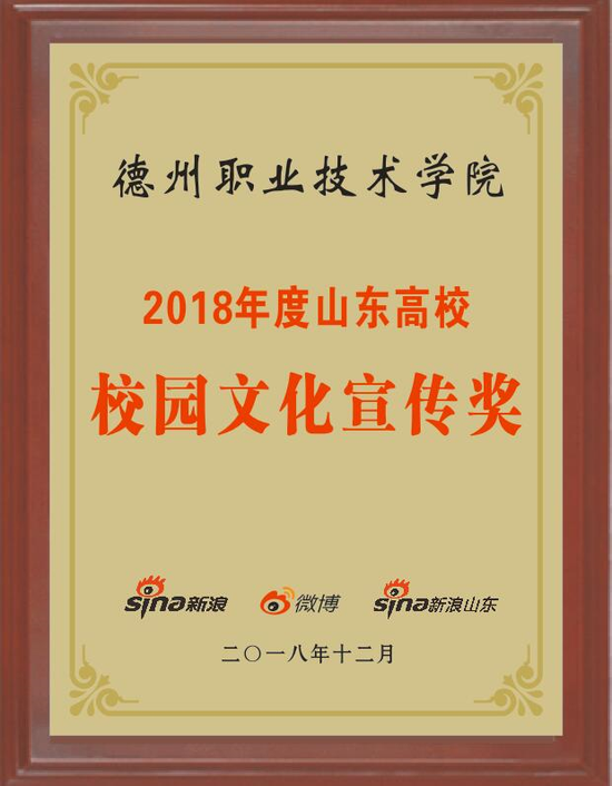 近日,新浪网2018年度山东教育新媒体宣传奖项榜单盛大发布,15vip太阳集团荣获“2018年度山东高校校园文化宣传奖”。