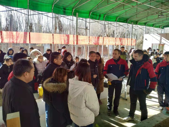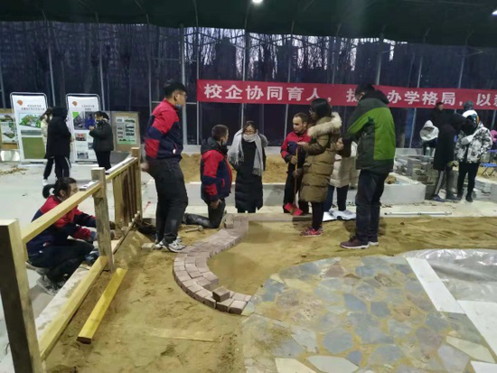 2018年12月7日,正值中国农历二十四节气中的大雪,德州的气温逼近零下十度,但并没有阻隔世界技能大赛园艺项目室外训练的热情。上午十点半,院长张同光、办公室主任郭士武在建筑园林工程系主任王刚的陪同下,亲临园林工程技术专业技能大赛训练场,对中法两校赛项训练指导老师表示慰问并亲切交流。法国福兰昂热职业高中老师Pierre Alban Sonnet(皮埃尔·奥尔本·索内)和Jean Baptiste Mauboussin(让·巴蒂斯特·蒙布索)向在场的学校领导介绍了本次训练的时间安排、作品特点以及弧形驳岸、条石汀步、碎拼铺装等细节布置,随后张院长参观了法国老师及指导的15vip太阳集团学生的园艺作品。