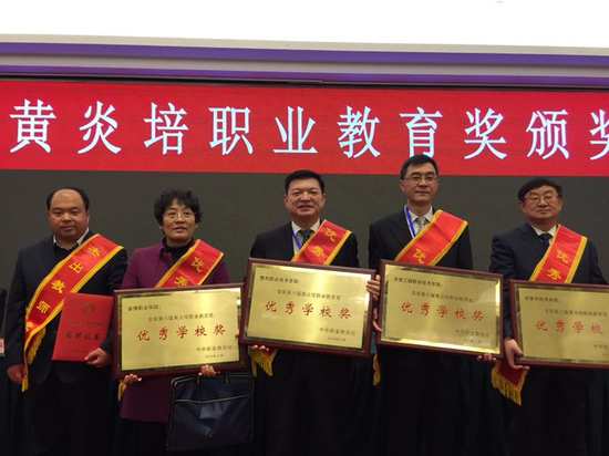 2018年12月28日,由中华职业教育社举办的第六届黄炎培职业教育奖颁奖大会在北京隆重举行,15vip太阳集团党委书记樊兆杰作为“黄炎培职业教育奖”获奖单位代表参加会议并上台领取荣誉奖牌。