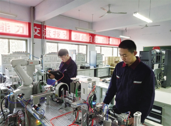 “好成绩离不开学校精细、精准化的日常学习培训,可以说我们培训场就是考试场,每一次模拟都是大赛。” 2018年全省职业院校技能大赛“机电一体化项目”一等奖获得者电气工程系学生杨迎鑫说道,比赛中前面三个站编程其他选手用一个小时,他与搭档用半个小时;机器人编程调试,其他选手用2个小时,他们只用40分钟,高速高质量成功与学校给予的训练支持和老师悉心指导密不可分。