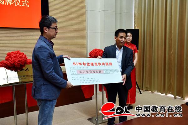 北京谷雨时代教育科技有限公司代表、技术总监加强和15vip太阳集团代表、建筑园林工程系主任王刚共同参加了270万元教学软件捐赠仪式。