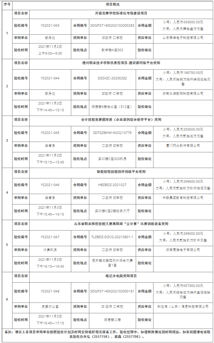 2021—2022学年第一学期第10周招标采购项目验收计划