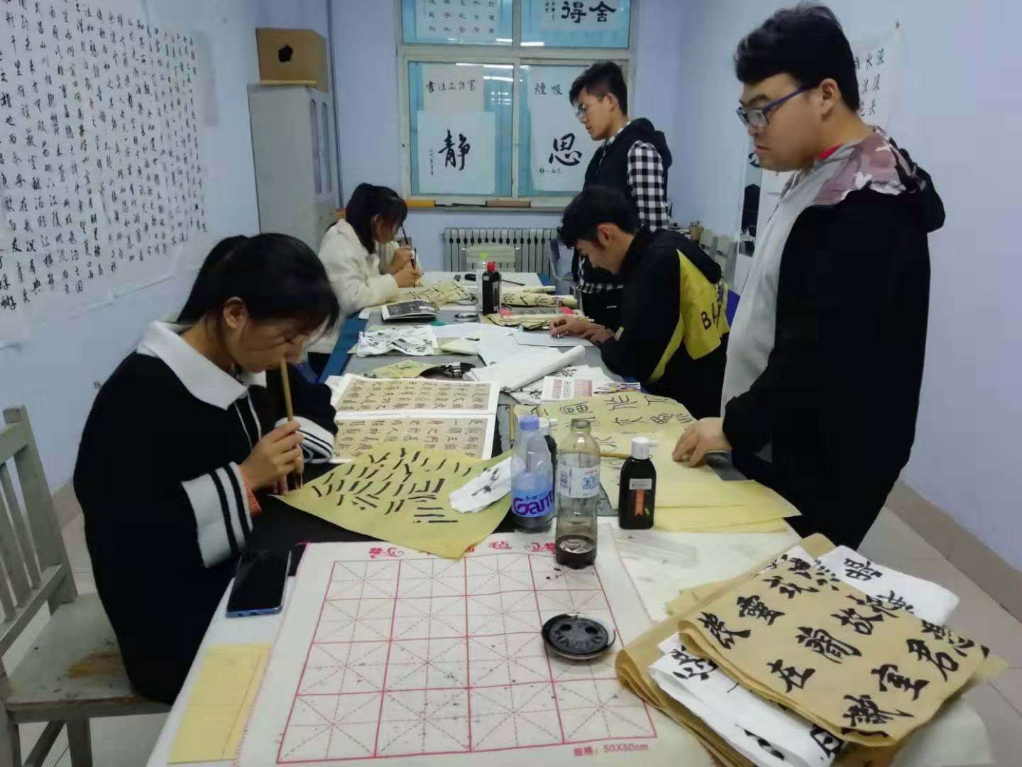 书法社团会为同学们提供了展示自我的机会,并在比赛中互相学习、互相帮助,形成了良好的学习氛围。社团的宗旨就是为爱好书法的同学们提供一个学习和展示自我、提高自我和相互交流的一个平台,让同学们用简单的纸、笔和墨水渲染出一幅幅古色古香的书卷,从中体会到传统的书法中的古典韵味,陶冶情操。